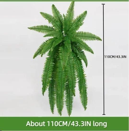 🌸【Full size and high quality】- Suitable for decoration:  This large Artificial plants Boston Fern contains 18 branches. making it looks very plump. The length of a single branch can reach 27.55 inches. and the horizontal expansion size can reach 43.30 inches. making it looks very large and full. It is very suitable for places such as courtyards. living rooms. offices. etc
