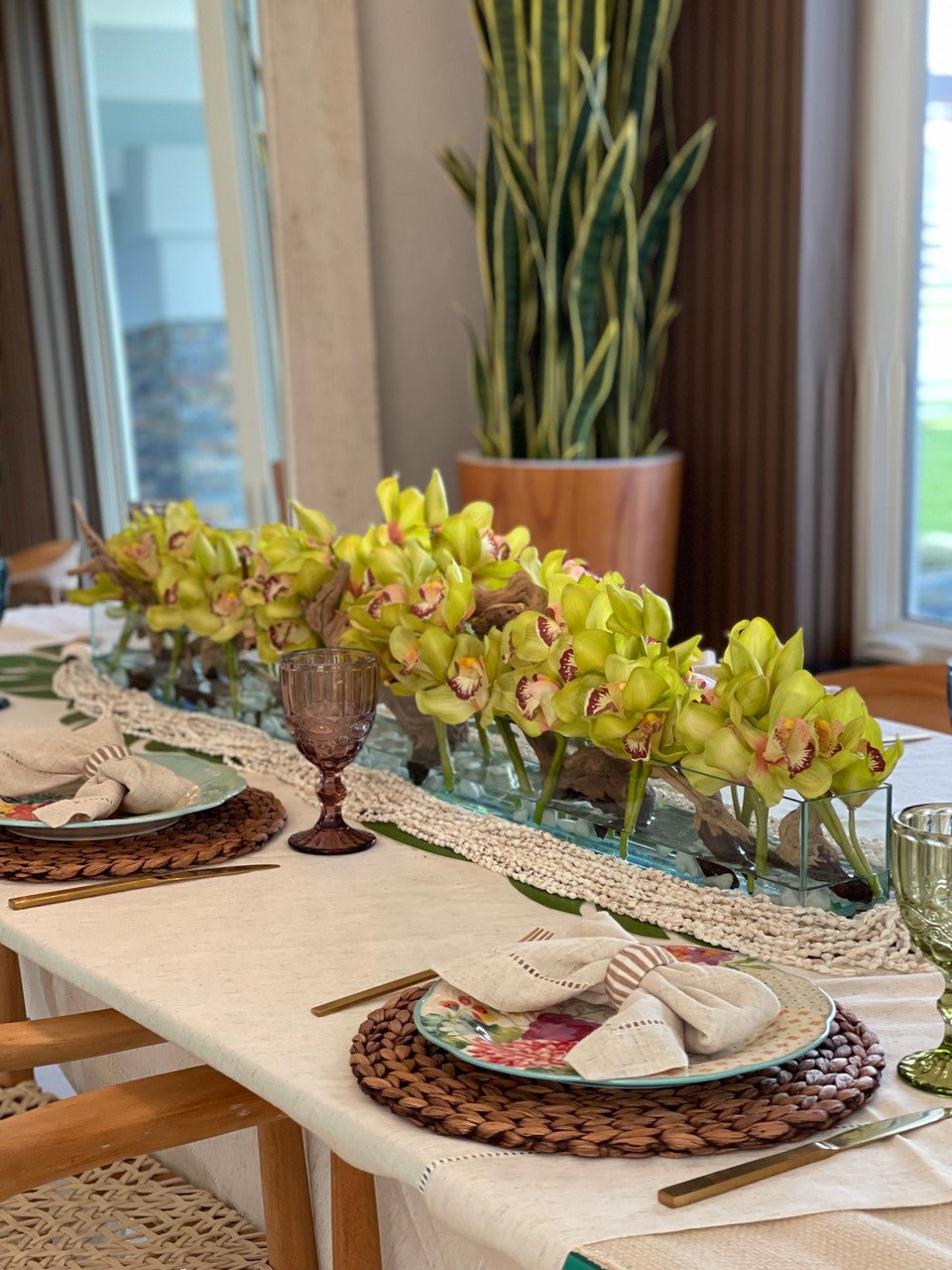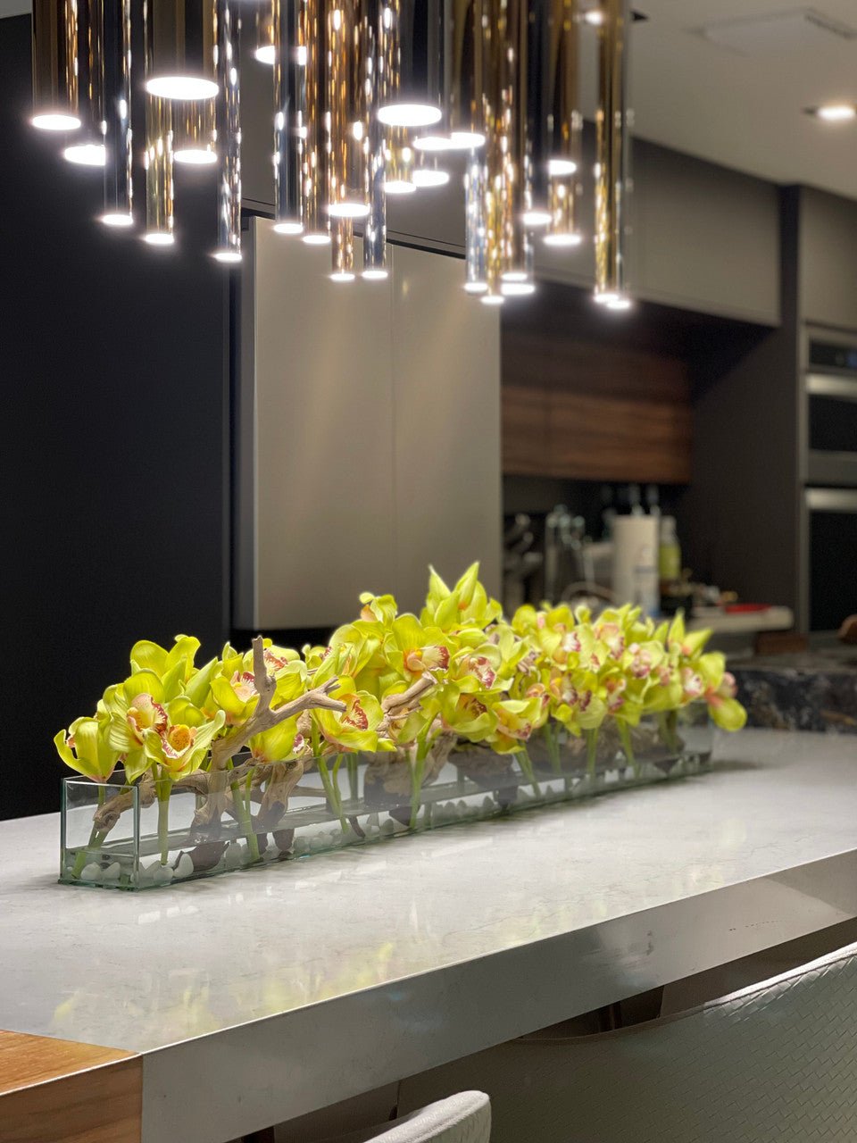 Be the first to review “48″ Casa Moderna glass plate planter with green Cymbidium orchids”